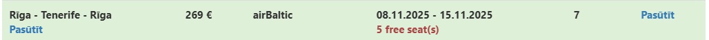 Share the post "Pēdējā brīža Tenerife! Čarterlidojums no Rīgas – 269 EUR turp un atpakaļ ar bagāžu"