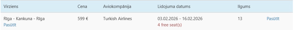 Datumi: 3.-16.02. 599 EUR turp un atpakaļ vienam cilvēkam