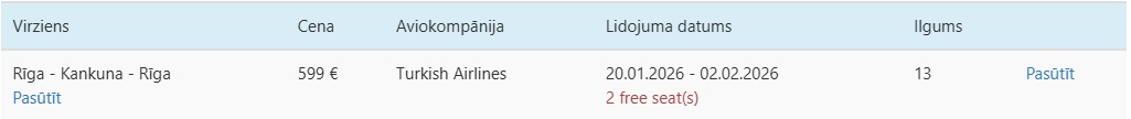 Turkish Airlines lidojumi no Rīgas uz Kankunu ar pārsēšanos Stambulā.