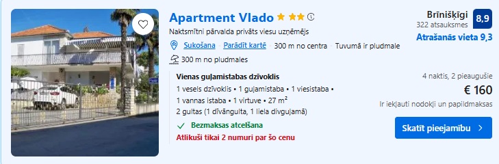 Apartamenti Apartment Vlado uz 4 naktīm – 160 EUR.