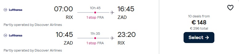 Lufthansa lidojumi no Rīgas uz Zadaru ar pārsēšanos Frankfurtē.