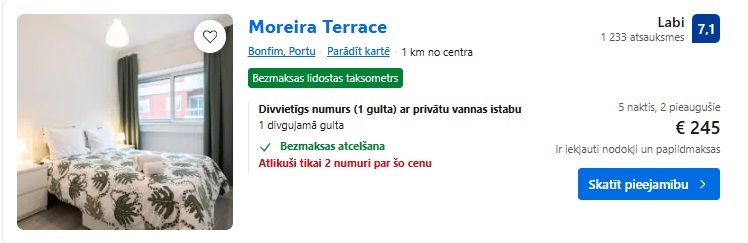 Viesnīca Moreira Terrace. Divvietīgs numurs uz 5 naktīm – 245 EUR.