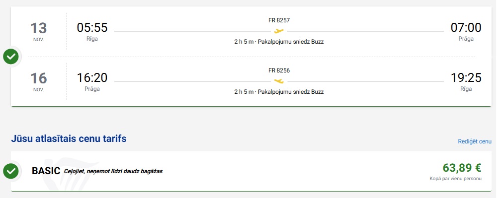 Tiešie Ryanair lidojumi no Rīgas uz Prāgu.