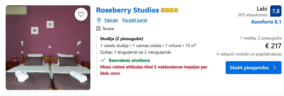 Studija Roseberry Studios uz 7 naktīm – 217 EUR.