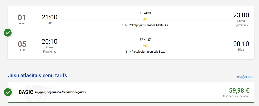Tiešie Ryanair lidojumi no Rīgas uz Romu.