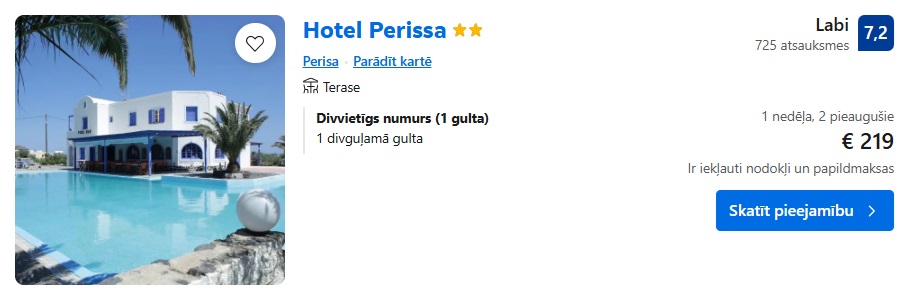 Viesnīca Hotel Perissa. Divvietīgs numurs uz 7 naktīm – 219 EUR.