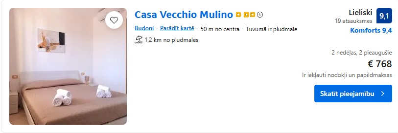 Apartamenti Casa Vecchio Mulino uz 14 naktīm – 768 EUR.