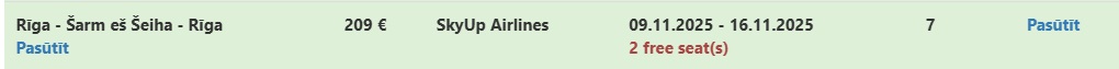 Čarterlidojums no Rīgas uz Šarm eš Šeihu.