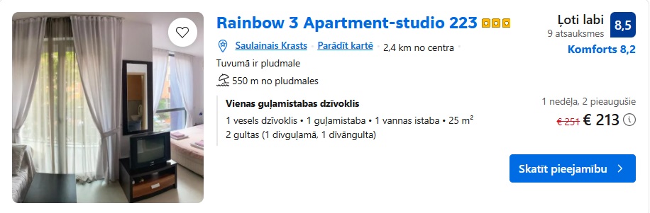 Apartamenti Rainbow 3 Apartment-studio 223 uz 7 naktīm – 213 EUR.