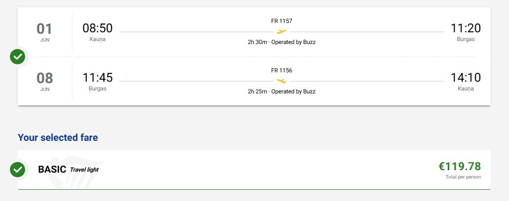 Tiešie Ryanair lidojumi no Kauņas uz Burgasu.