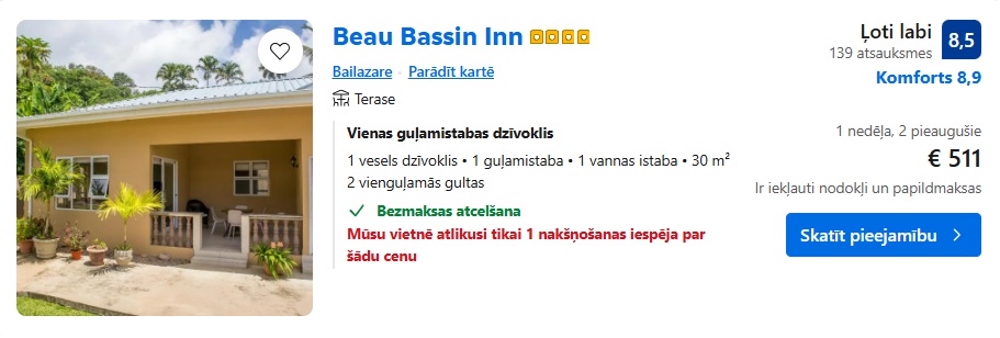 Apartamenti Beau Bassin Inn uz 7 naktīm – 511 EUR.