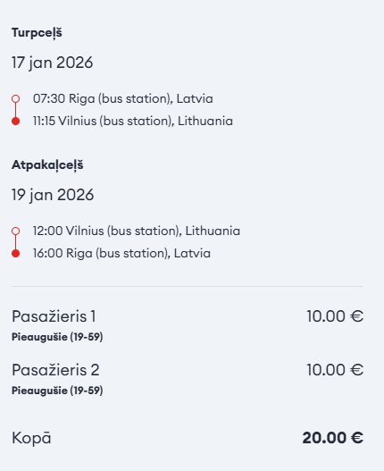 Piem. datumi: 17.-19.01. 10 EUR turp un atpakaļ vienam cilvēkam vai 20 EUR diviem