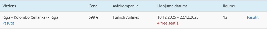 Datumi: 10.-22.12. 599 EUR turp un atpakaļ vienam cilvēkam