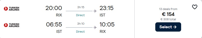 Tiešie Turkish Airlines lidojumi no Rīgas uz Stambulu.