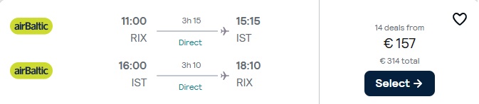 Tiešie Air Baltic lidojumi no Rīgas uz Stambulu.