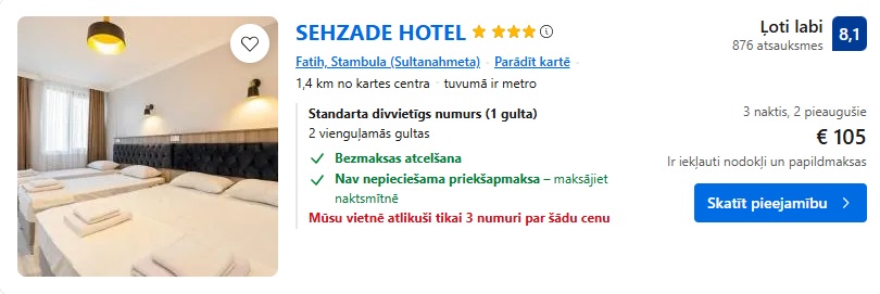 4* viesnīca SEHZADE HOTEL. Divvietīgs numurs uz 3 naktīm – 105 EUR.
