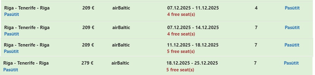 Tenerife! Čarterlidojumi no Rīgas – 209 EUR turp un atpakaļ ar bagāžu