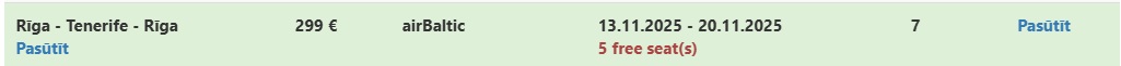 Share the post "Tenerife! Čarterlidojumi no Rīgas no 299 EUR turp un atpakaļ ar bagāžu"