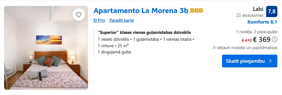 Apartamenti Apartamento La Morena 3b uz 7 naktīm līdz 3 cilvēkiem – 369 EUR.