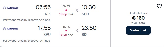 Lufthansa lidojumi no Rīgas uz Splitu ar pārsēšanos Frankfurtē.