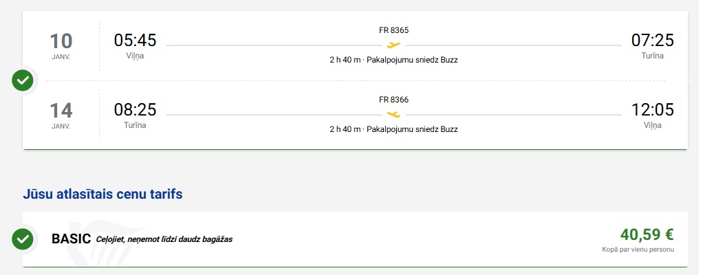 Tiešie Ryanair lidojumi no Viļņas uz Turīnu (cenā nav iekļauta bagāža).