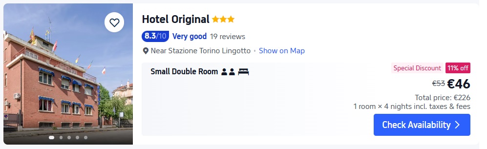 Viesnīcai Original ir lieliska sabiedriskā transporta satiksme pa Turīnu. Tā atrodas 5 minūšu brauciena attālumā no Stupinigi medību rezidences, kas ir UNESCO Pasaules mantojuma sarakstā iekļauta ēka, un Lingotto tirdzniecības izstādes.