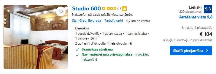 Apartamenti Studio 600 uz 3 naktīm – 104 EUR.