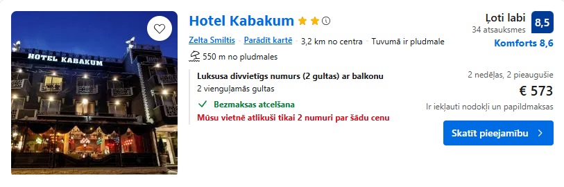 Viesnīca Hotel Kabakum. Divvietīgs numurs uz 14 naktīm – 573 EUR.