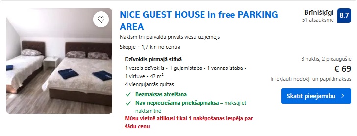 Apartamenti NICE GUEST HOUSE in free PARKING AREA uz 3 naktīm – 69 EUR.